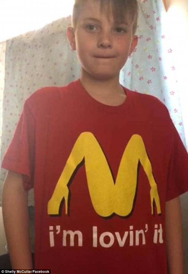 A mother’s apology has gone viral, after her elementary-school-aged son wore a McDonald’s ‘I’m Lovin It’ parody t-shirt, depicting ‘golden arches’ as a pair of spread woman’s legs in high heels. The mother said her son will never wear the shirt again, and the boy said three of his teachers asked him on a date.