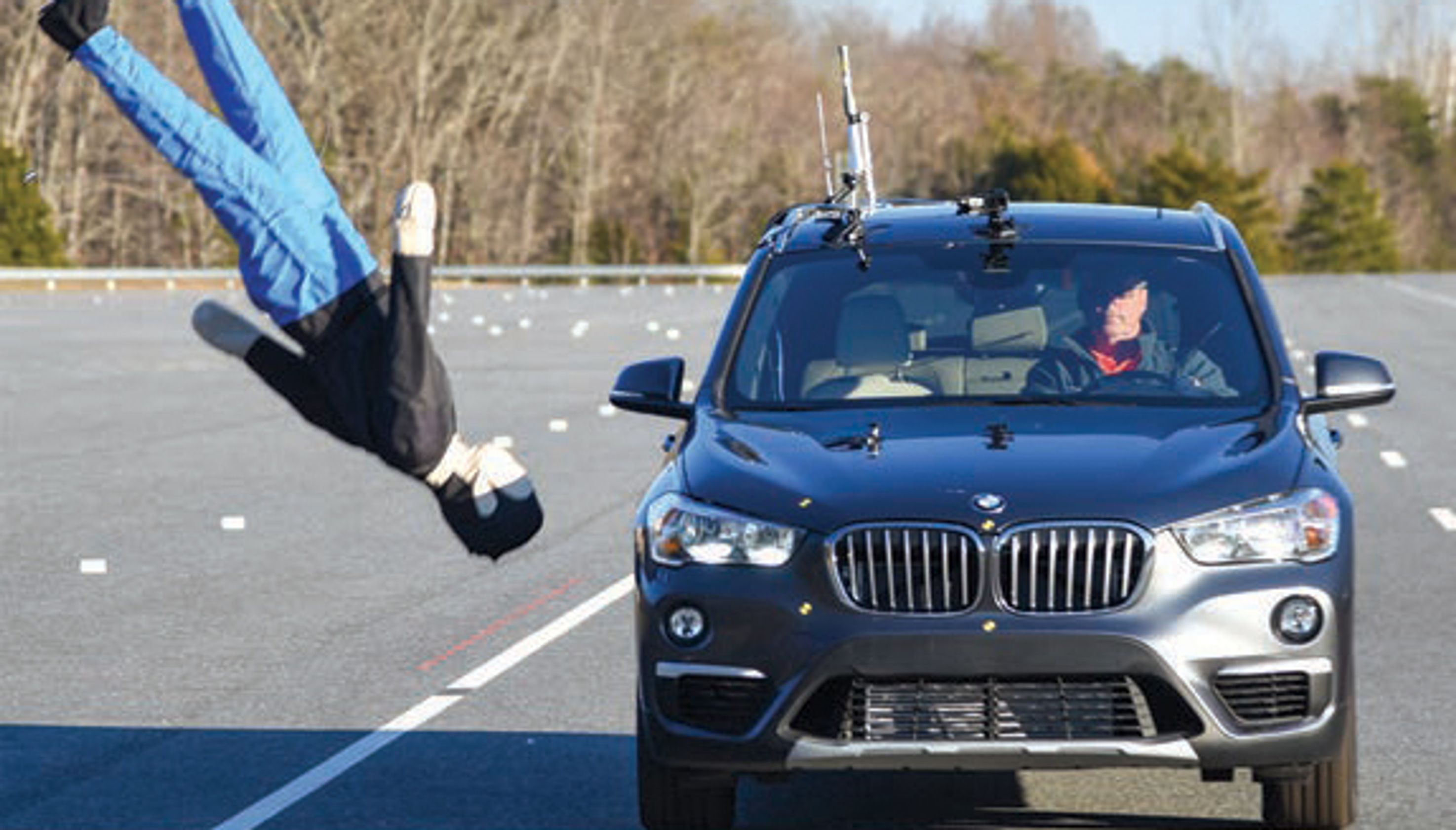 The Insurance Institute for Highway Safety tested small SUVs’ ‘pedestrian detection’ systems. Honda, Subaru, Volvo & Toyota received the highest scores. The BMW SUV failed entirely, running over the test pedestrian because it was already late for a tee time.