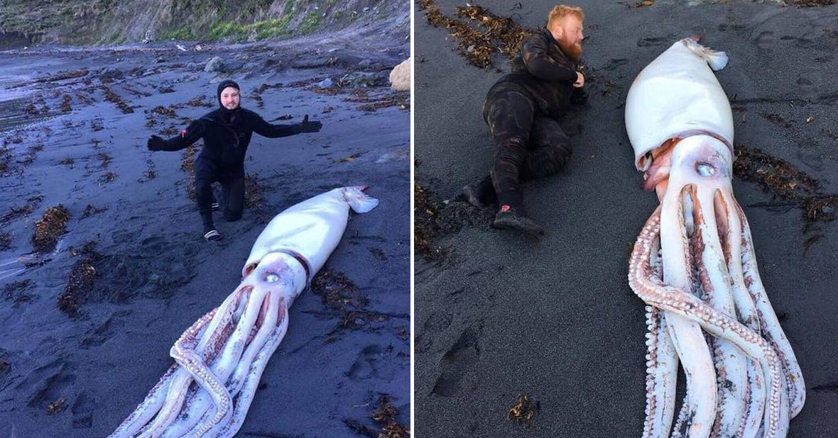 A giant squid died after washing on to a beach in South Africa’s Western Cape province. The squid was clutching an unfinished note to his family, but had run out of ink.