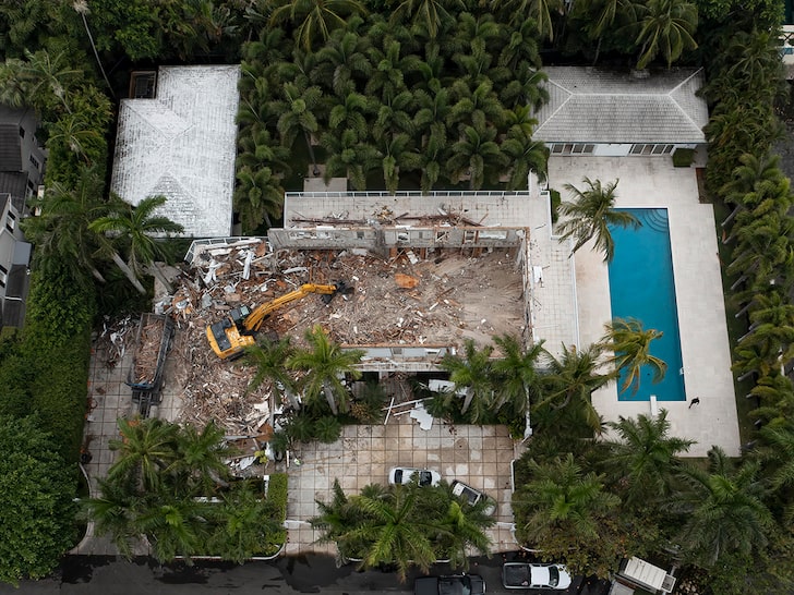 The purchaser of Jeffrey Epstein’s Palm Beach mansion had it demolished, sharing photos of bucket loaders tearing up the floorboards and filling up with girls underwear.