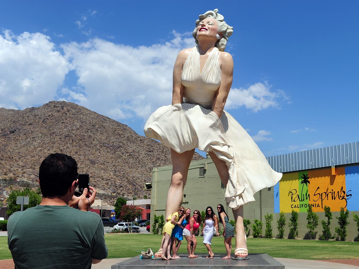 Protesters at the Palm Springs unveiling of a 26-foot-tall statue of Marilyn Monroe, claimed it’s exploitative because it shows Monroe’s underwear, recreating a scene from The Seven-Year Itch. They also claim it’s unnecessary to have a statue of John F. Kennedy next to it, staring up her skirt.