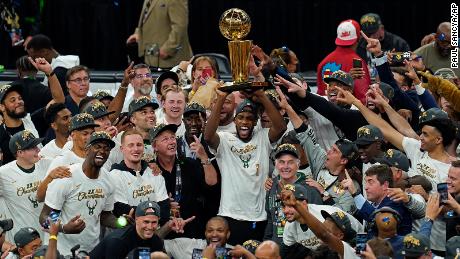 The Milwaukee Bucks won the NBA title, but gunfire outside their home arena in the postgame celebration sent three people to the hospital with Buckshot wounds .