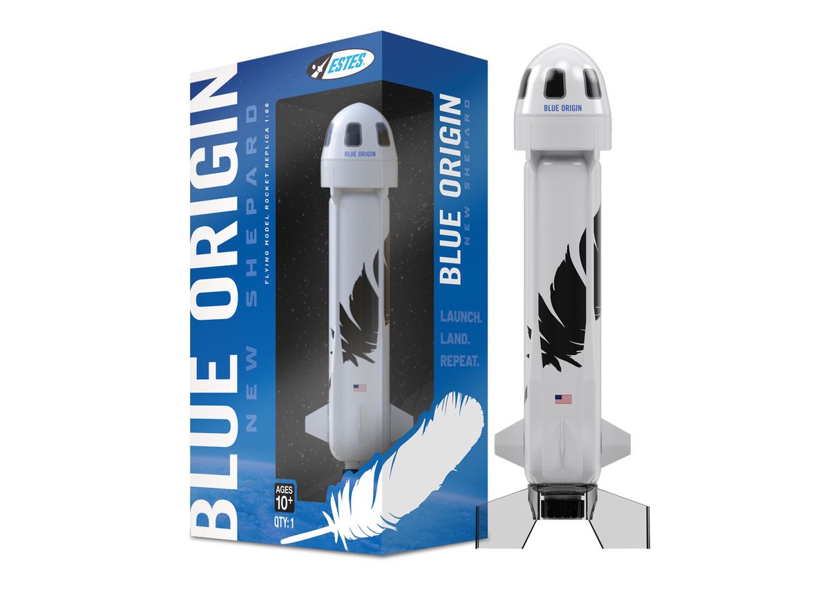 Estes model rocket company is selling a $69.99 replica of the Blue Origin ship that Jeff Bezos rode into space, if you don’t mind having it appear as though your kid is launching a dildo into the air from your backyard.