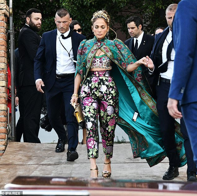 Jennifer Lopez wore a multipiece Dolce & Gabbana outfit in Venice, but left the price tag on the cape. Onlookers questioned the authenticity of the clothes, since the tag was from TJ Maxx.