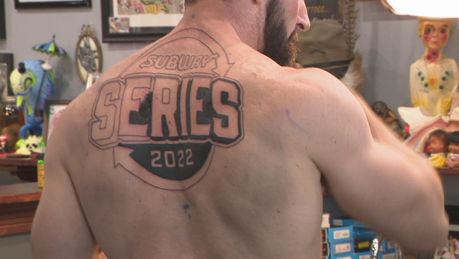 Because he got a foot-long back tattoo with Subway sandwich shops new Subway Series logo, a Las Vegas man now gets free Subway sandwiches for life. He plans to eat Subway cheesesteaks and meatball subs every day for the rest of his life – about 14 months.