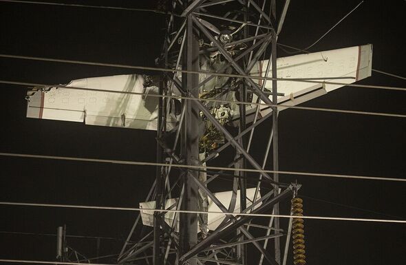 A small plane struck an electrical tower and became stuck in it 100 feet above the ground while attempting to land in Maryland. The pilot and a passenger were rescued after a bystander dialed nine eleven.