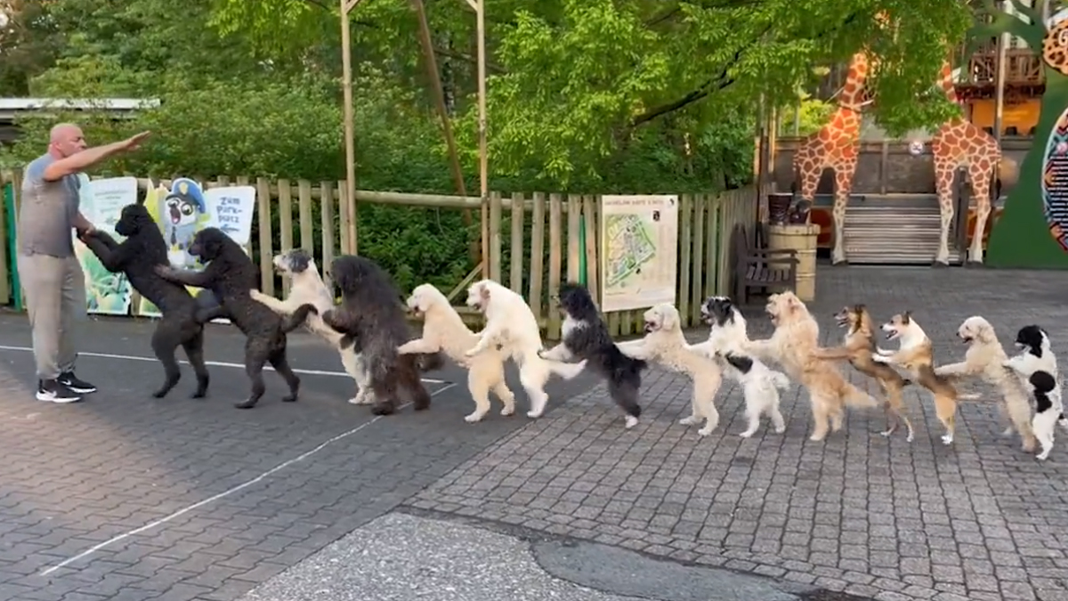 14 dogs hopping on their hind legs broke the Guinness World Record for longest canine conga line. Officials later disallowed a 16-dog line when it was determined they weren’t dancing, they were all just humping each other.
